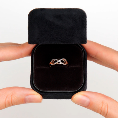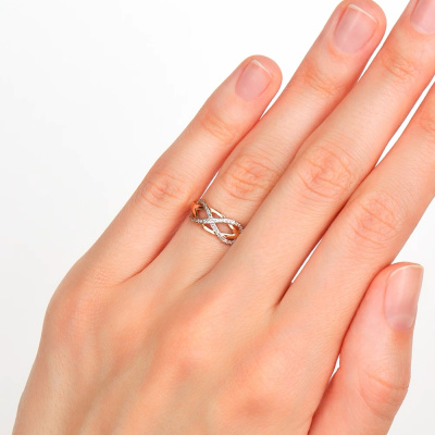 Кольцо с 38 бриллиантами природными, 0.09 карат, огранка круг 17 граней, цвет 2, чистота 2, тип огранки А; Розовое золото 585 пробы.