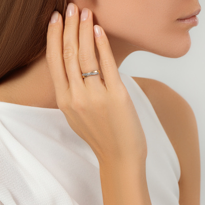 Кольцо с 44 бриллиантами природными, 0.15 карат, огранка круг 17 граней, цвет 2, чистота 2, тип огранки Б; Розовое золото 585 пробы.