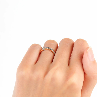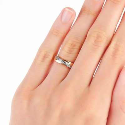 Кольцо с 44 бриллиантами природными, 0.138 карат, огранка круг 17 граней, цвет 2, чистота 2, тип огранки Б; Розовое золото 585 пробы.