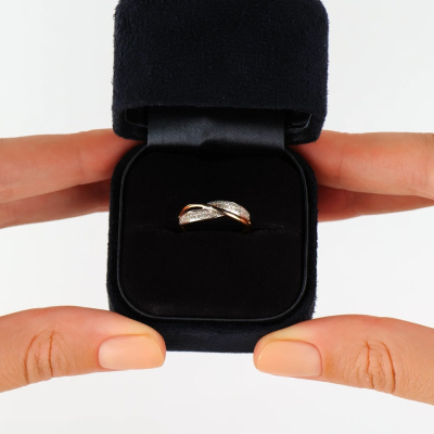 Кольцо с 48 бриллиантами природными, 0.103 карат, огранка круг 17 граней, цвет 2, чистота 2, тип огранки Б; Розовое золото 585 пробы.