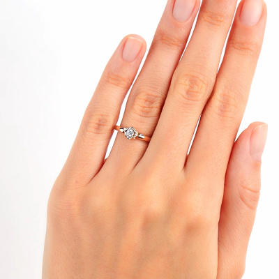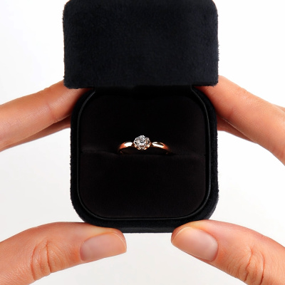 Кольцо «БРИЛЛИАНТЫ ЯКУТИИ» с 1 бриллиантом, 0.083 карат, огранка круг 57 граней, цвет 5, чистота 7, тип огранки А; Розовое золото 585 пробы.