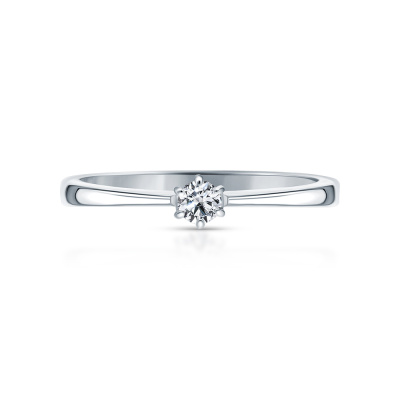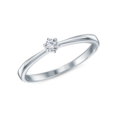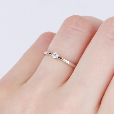Кольцо с 1 бриллиантом природным, 0.08 карат, огранка круг 57 граней, цвет 3, чистота 6, тип огранки А; Белое золото 585 пробы.