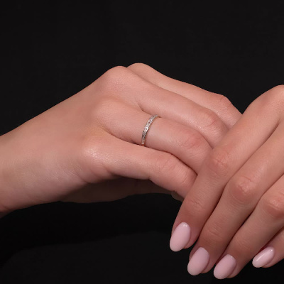 Кольцо с 21 бриллиантом природным, 0.04 карат, огранка круг 17 граней, цвет 2, чистота 2, тип огранки А; Желтое золото 585 пробы.
