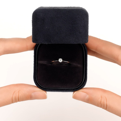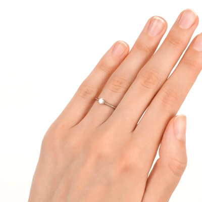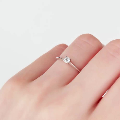 Кольцо с 1 бриллиантом природным, 0.18 карат, огранка круг 57 граней, цвет 4, чистота 5, тип огранки А; Белое золото 585 пробы.