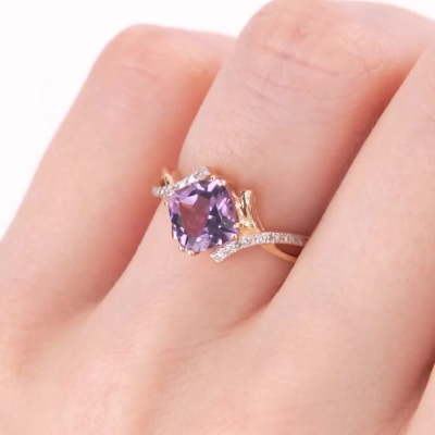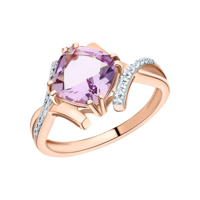 Кольцо с 20 бриллиантами природными, 0.03 карат, огранка круг 17 граней, цвет 2, чистота 2, тип огранки Б; 1 аметистом природным, 1.43 карат; Розовое золото 585 пробы.