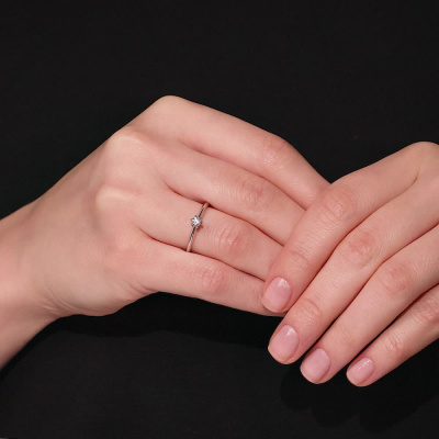 Кольцо с 1 бриллиантом природным, 0.15 карат, огранка круг 57 граней, цвет 3, чистота 6, тип огранки А; Белое золото 585 пробы.