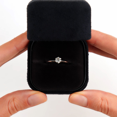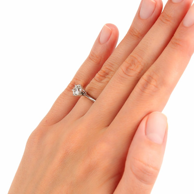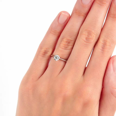 Кольцо с 1 бриллиантом природным, 0.36 карат, огранка круг 57 граней, цвет 7, чистота 5, тип огранки А; Белое золото 585 пробы.