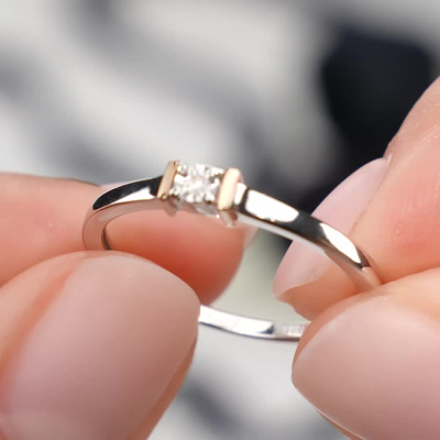 Кольцо с 1 бриллиантом природным, 0.008 карат, огранка круг 17 граней, цвет 2, чистота 2, тип огранки А; элементы из золота Au585; Серебро 925 пробы.