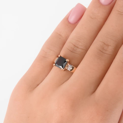 Кольцо с 8 бриллиантами природными, 0.03 карат, огранка круг 17 граней, цвет 2, чистота 2, тип огранки Б; 1 гранатом природным, 1.87 карат, тип огранки Б; Розовое золото 585 пробы.