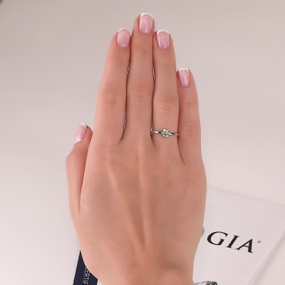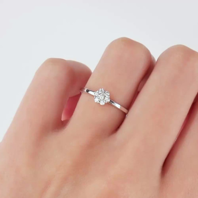 Кольцо с 1 бриллиантом природным, 0.04 карат, огранка круг 57 граней, цвет 5, чистота 6; 6 бриллиантами природными, 0.12 карат, огранка круг 57 граней, цвет 5, чистота 6; Белое золото 585 пробы.