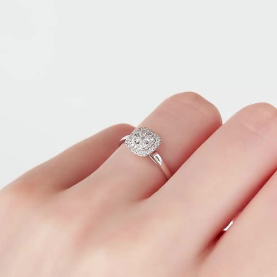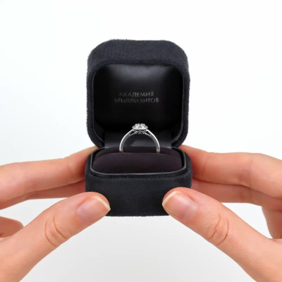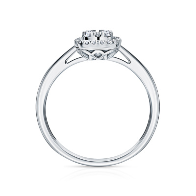 Кольцо с 5 бриллиантами природными, 0.12 карат, огранка круг 57 граней, цвет 3, чистота 6, тип огранки А; 24 бриллиантами природными, 0.08 карат, огранка круг 17 граней, цвет 2, чистота 2, тип огранки А; Белое золото 585 пробы.