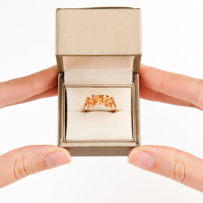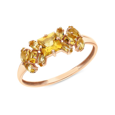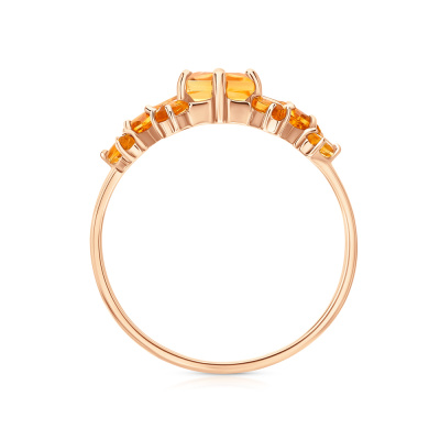 Кольцо с 1 цитрином природным, 0.55 карат, тип огранки Б; 2 цитринами природными, 0.275 карат, тип огранки Б; 8 цитринами природными, 0.55 карат, тип огранки Б; Розовое золото 585 пробы.