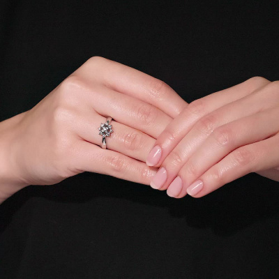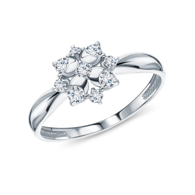 Кольцо с 4 бриллиантами природными, 0.2 карат, огранка круг 57 граней, цвет 3, чистота 6, тип огранки А; 1 бриллиантом природным, 0.03 карат, огранка круг 57 граней, цвет 3, чистота 6, тип огранки А; 4 бриллиантами природными, 0.07 карат, огранка круг 57 граней, цвет 3, чистота 6, тип огранки А; Белое золото 585 пробы.