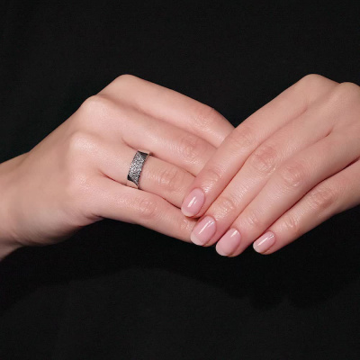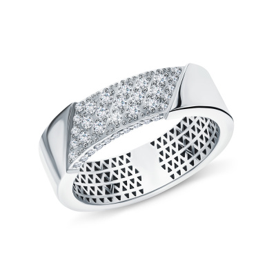 Кольцо с 15 бриллиантами природными, 0.13 карат, огранка круг 57 граней, цвет 4, чистота 5, тип огранки А; 30 бриллиантами природными, 0.08 карат, огранка круг 57 граней, цвет 4, чистота 5, тип огранки А; Белое золото 585 пробы.