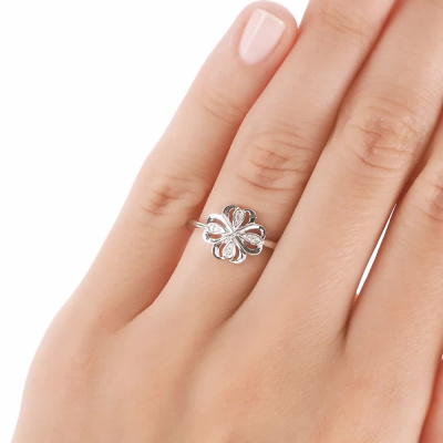 Кольцо с 4 бриллиантами природными, 0.02 карат, огранка круг 17 граней, цвет 2, чистота 4, тип огранки Б; Серебро 925 пробы.