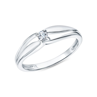 Кольцо с 1 бриллиантом выращенным, 0.06 карат, огранка круг 57 граней, цвет 3, чистота 5; Серебро 925 пробы.