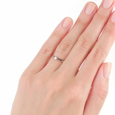 Кольцо с 1 бриллиантом природным, 0.05 карат, огранка круг 57 граней, цвет 3, чистота 6, тип огранки А; Платина 950 пробы.
