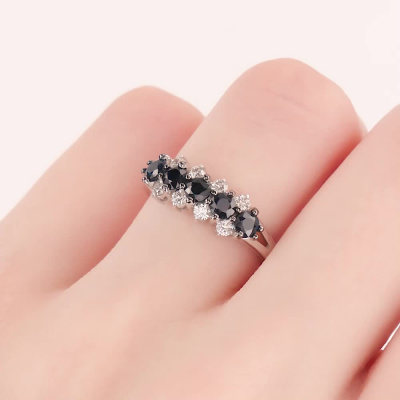 Кольцо с 8 бриллиантами природными, 0.22 карат, огранка круг 57 граней, цвет 4, чистота 5, тип огранки А; 5 сапфирами природными, 0.82 карат, цвет 2, чистота 2, тип огранки В; Белое золото 585 пробы.