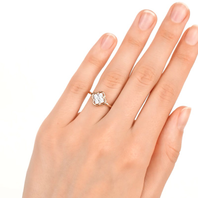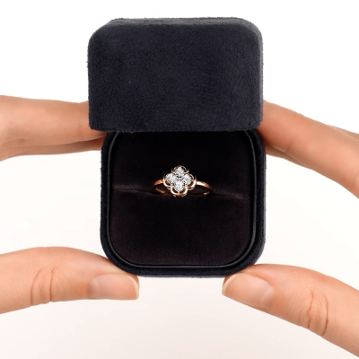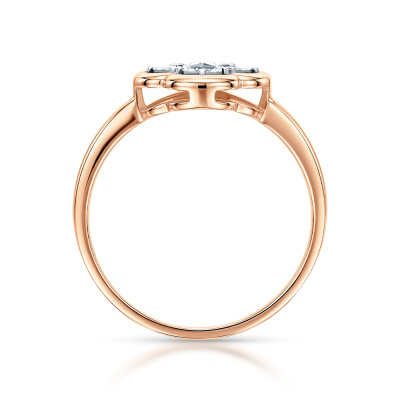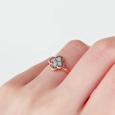 Кольцо с 4 бриллиантами природными, 0.01 карат, огранка круг 17 граней, цвет 2, чистота 2, тип огранки А; Розовое и белое золото 585 пробы.