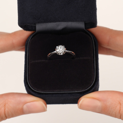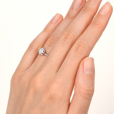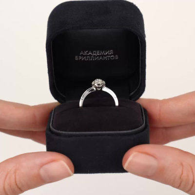 Кольцо с 1 бриллиантом природным, 0.06 карат, огранка круг 57 граней, цвет 3, чистота 6, тип огранки А; 6 бриллиантами природными, 0.1 карат, огранка круг 57 граней, цвет 3, чистота 6, тип огранки А; Белое золото 585 пробы.