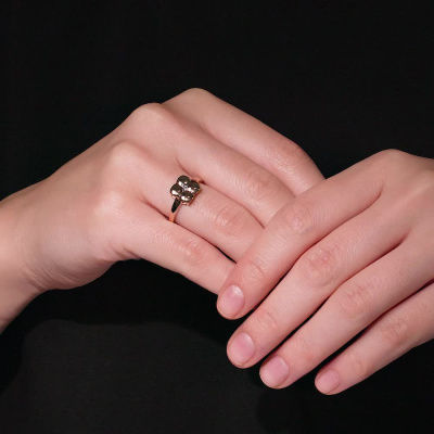 Кольцо с 1 бриллиантом природным, 0.02 карат, огранка круг 57 граней, цвет 3, чистота 6, тип огранки А; Розовое золото 585 пробы.