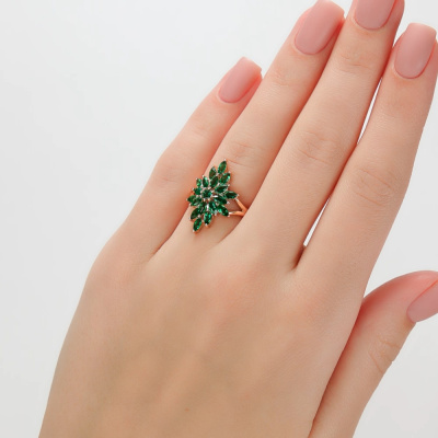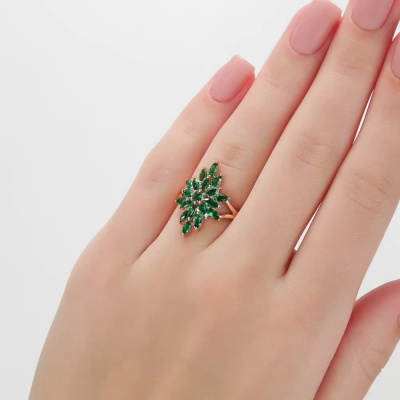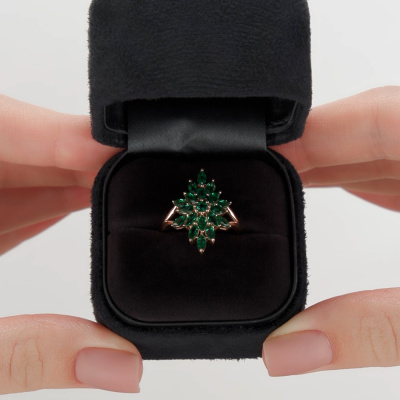 Кольцо с 18 гидротермальными изумрудами, 1.16 карат; 1 гидротермальным изумрудом, 0.06 карат; Розовое золото 585 пробы.