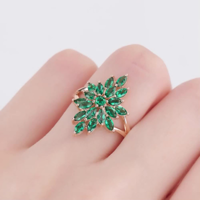 Золотое кольцо с изумрудами выращенными
