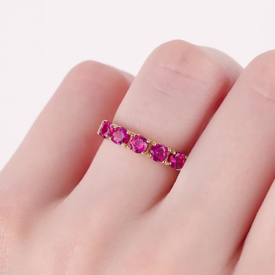 Кольцо с 5 рубинами синтетическими, 1.01 карат; Желтое золото 585 пробы.
