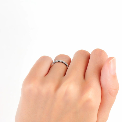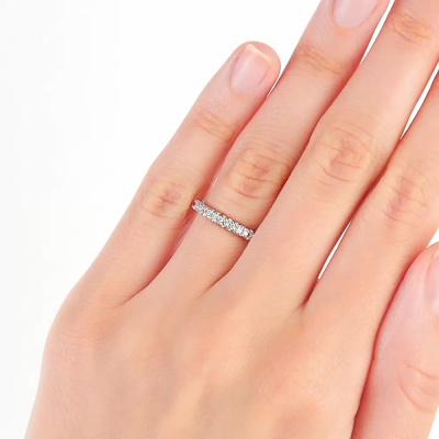 Кольцо с 15 бриллиантами природными, 0.11 карат, огранка круг 57 граней, цвет 3, чистота 6, тип огранки А; Белое золото 585 пробы.