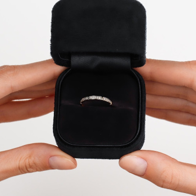 Кольцо с 15 бриллиантами природными, 0.04 карат, огранка круг 17 граней, цвет 2, чистота 2, тип огранки А; Розовое золото 585 пробы.