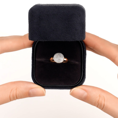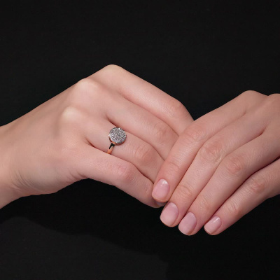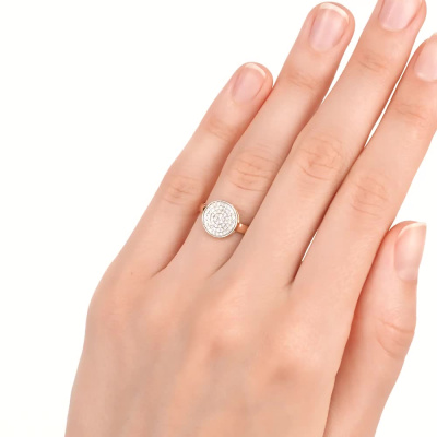 Кольцо с 61 бриллиантом природным, 0.16 карат, огранка круг 17 граней, цвет 2, чистота 2, тип огранки А; Розовое золото 585 пробы.