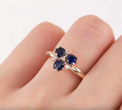 Золотое кольцо с бриллиантами природными, сапфирами выращенными и сапфирами природными