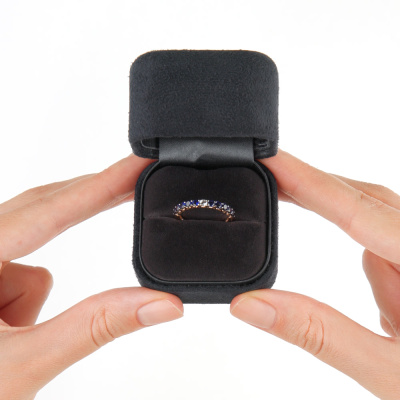 Кольцо с 10 сапфирами синтетическими, 0.82 карат; 1 сапфиром бесцветным природным, 0.07 карат; Розовое золото 585 пробы.