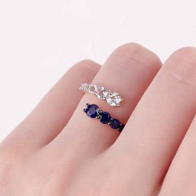 Кольцо с 1 сапфиром синтетическим, 0.31 карат; 1 топазом бесцветным природным, 0.31 карат; 1 сапфиром синтетическим, 0.2 карат; 1 топазом бесцветным природным, 0.2 карат; 1 топазом бесцветным природным, 0.13 карат; 1 сапфиром синтетическим, 0.13 карат; 1 сапфиром синтетическим, 0.12 карат; 1 топазом бесцветным природным, 0.07 карат; 1 сапфиром синтетическим, 0.04 карат; 1 топазом бесцветным природным, 0.03 карат; Розовое золото 585 пробы.