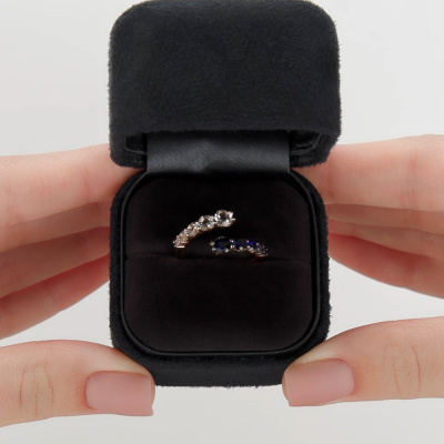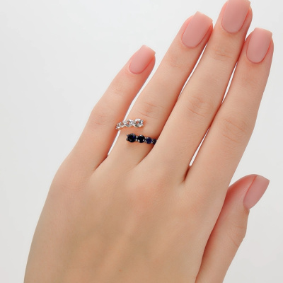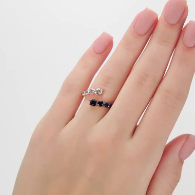 Кольцо с 1 сапфиром синтетическим, 0.31 карат; 1 топазом бесцветным природным, 0.3 карат; 1 сапфиром синтетическим, 0.2 карат; 1 топазом бесцветным природным, 0.2 карат; 1 топазом бесцветным природным, 0.13 карат; 1 сапфиром синтетическим, 0.13 карат; 1 сапфиром синтетическим, 0.12 карат; 1 топазом бесцветным природным, 0.07 карат; 1 сапфиром синтетическим, 0.04 карат; 1 топазом бесцветным природным, 0.03 карат; Розовое золото 585 пробы.