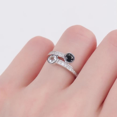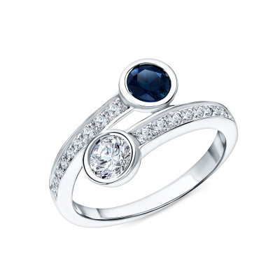 Кольцо с 1 сапфиром бесцветным, 0.26 карат, тип огранки В; 1 сапфиром, 0.26 карат, цвет 2, чистота 2, тип огранки В; 6 бриллиантами, 0.08 карат, огранка круг 57 граней, цвет 3, чистота 6, тип огранки А; 8 бриллиантами, 0.05 карат, огранка круг 57 граней, цвет 3, чистота 6, тип огранки А; 4 бриллиантами, 0.01 карат, огранка круг 17 граней, цвет 2, чистота 2, тип огранки А; Белое золото 585 пробы.