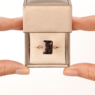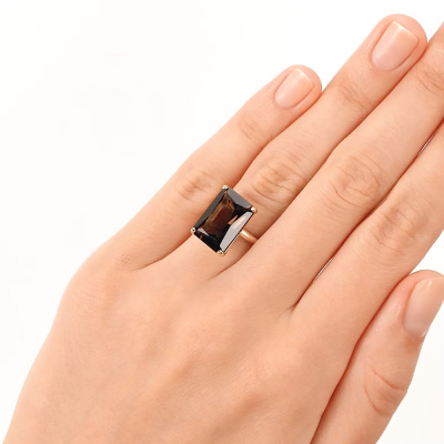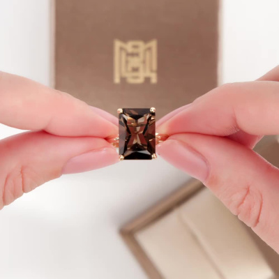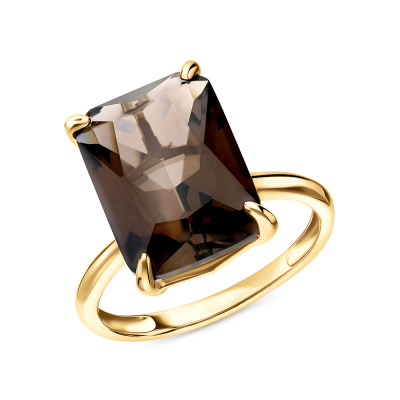Кольцо с 1 кварцем дымчатым природным, 5.59 карат; Желтое золото 585 пробы.