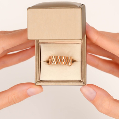 Украшения без вставок привлекают внимание своим изысканным дизайном и благородным сиянием розового золота. Их главное достоинство — идеальная форма, которую ничто не нарушает, кроме изящных линий и деталей. Такие изделия тонко ассоциируются с женственностью, делая акцент на его обладательнице. Серьги, кольца или подвески — любая модель ассортимента Московского Цепевязального Завода сделает ваш образ завершенным и безупречным.