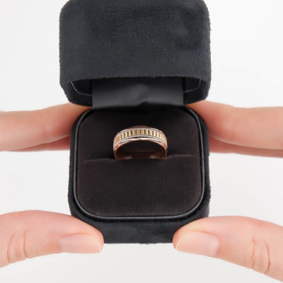 Кольца с «комфортной посадкой» — это оптимальный выбор для тех, кто ищет баланс между комфортом, долговечностью и эстетикой. Закруглённая внутренняя поверхность снижает давление на палец и исключает дискомфорт даже при длительном носке. В отличие от других моделей, такие кольца имеют меньшую площадь соприкосновения с кожей — это делает их более удобными в течение дня. Полновесная конструкция обеспечивает надёжность и сохранение формы, а особенности строения позволяют при необходимости легче скорректировать размер по сравнению с классическими моделями.