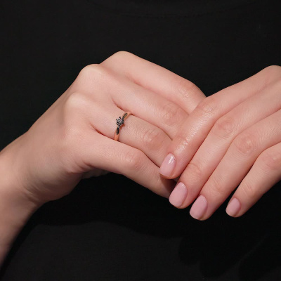Кольцо с 1 бриллиантом природным, 0.05 карат, огранка круг 57 граней, цвет 4, чистота 6, тип огранки А; Розовое золото 585 пробы.