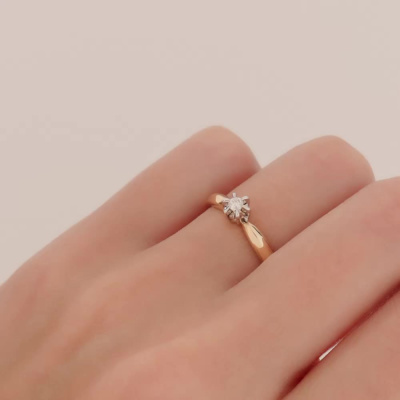 Кольцо с 1 бриллиантом природным, 0.05 карат, огранка круг 57 граней, цвет 4, чистота 6, тип огранки А; Желтое золото 585 пробы.