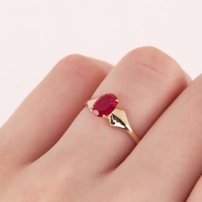 Кольцо с 1 рубином синтетическим, 1.01 карат, тип огранки Б; Розовое золото 585 пробы.