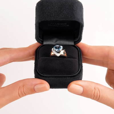 Золотое кольцо с бриллиантами природными и топазами природными