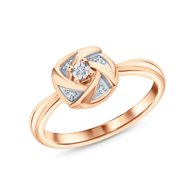 Кольцо с 5 бриллиантами природными, 0.02 карат, огранка круг 17 граней, цвет 2, чистота 3; Серебро 925 пробы.