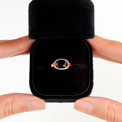 Кольцо с 1 сапфиром синтетическим, 1.46 карат; фианитом бесцветным; Розовое золото 585 пробы.