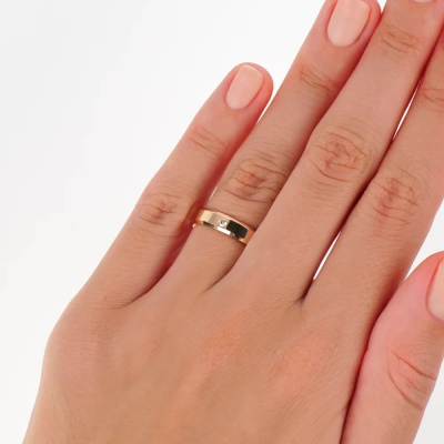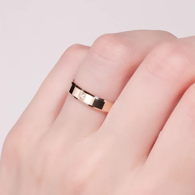 Кольцо с 1 бриллиантом природным, 0.03 карат, огранка круг 57 граней, цвет 3, чистота 5, тип огранки А; Розовое золото 585 пробы.