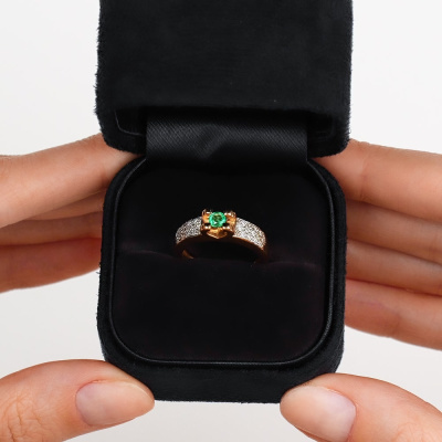 Золотое кольцо с бриллиантами природными и изумрудами природными