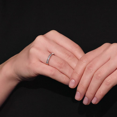 Кольцо с 38 бриллиантами природными, 0.08 карат, огранка круг 17 граней, цвет 2, чистота 2, тип огранки А; Розовое и белое золото 585 пробы.