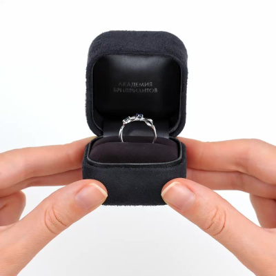 Кольцо с 1 топазом лондон природным, 0.304 карат, тип огранки В; 1 сапфиром синтетическим, 0.135 карат, тип огранки В; 1 сапфиром синтетическим, 0.085 карат, тип огранки В; Белое золото 585 пробы.