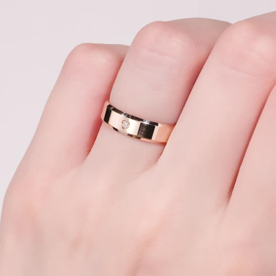 Кольцо с 1 бриллиантом природным, 0.02 карат, огранка круг 57 граней, цвет 3, чистота 6, тип огранки А; Розовое золото 585 пробы.
